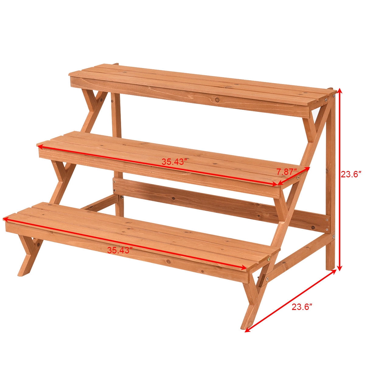 3 tier flower plant pot wooden shelf stand display garden step style ladder rack uk seller.